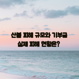 이번 글에서는 최근 발생한 대규모 산불 사례를 통해 피해 규모와 기부금의 관계를 살펴보고, 정부의 산불재난지원금 제도에 대해서도 알아보겠습니다. 이를 통해 우리는 산불 피해 복구 과정에서 기부금과 정부 지원금이 어떤 역할을 하는지 이해할 수 있을 것입니다.