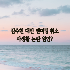 최근 배우 김수현의 사생활 논란이 일파만파 커지면서, 그의 대만 팬미팅 일정이 취소되었습니다. 과연 이번 팬미팅 취소의 진짜 이유는 무엇일까요? 그리고 이 사건이 김수현의 향후 행보에 어떤 영향을 미칠지 궁금해지지 않나요?